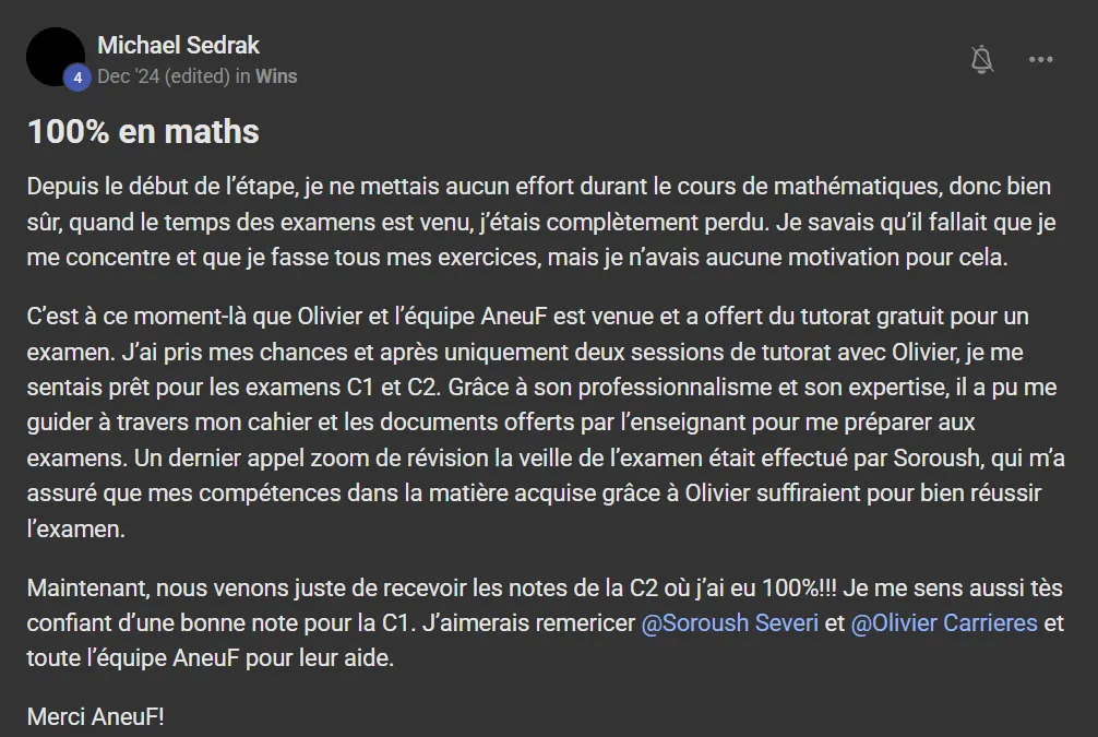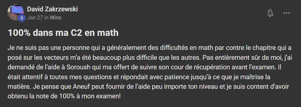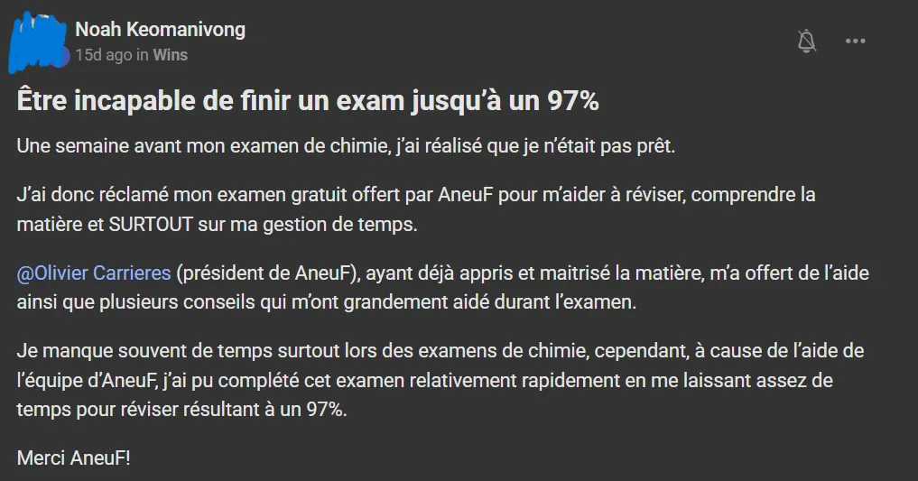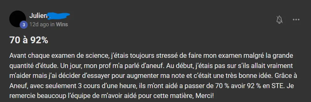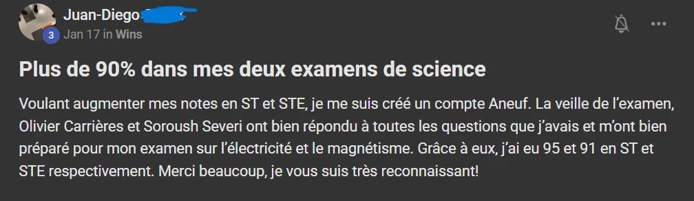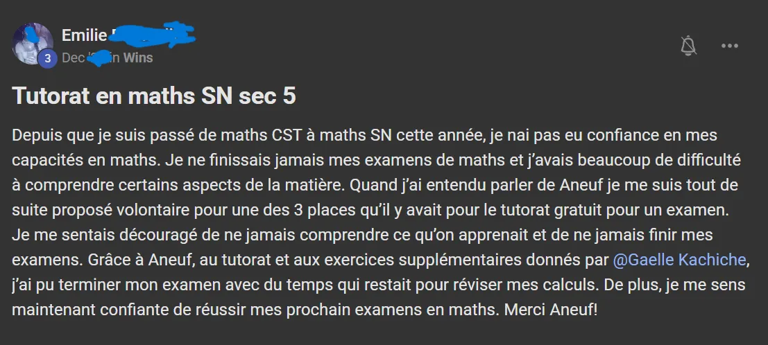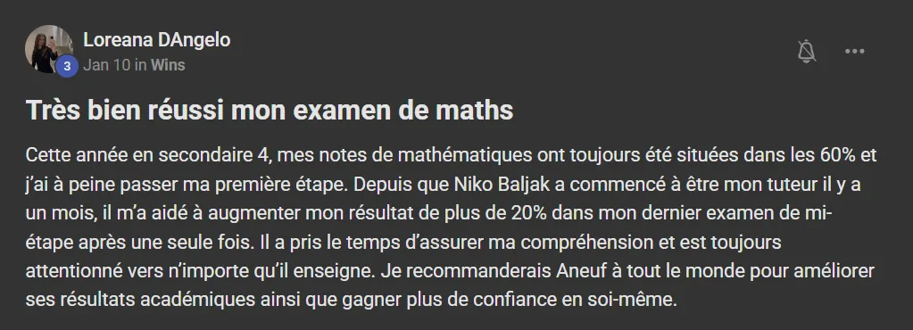 Voici ce que quelques élèves ont à dire d'AneuF: