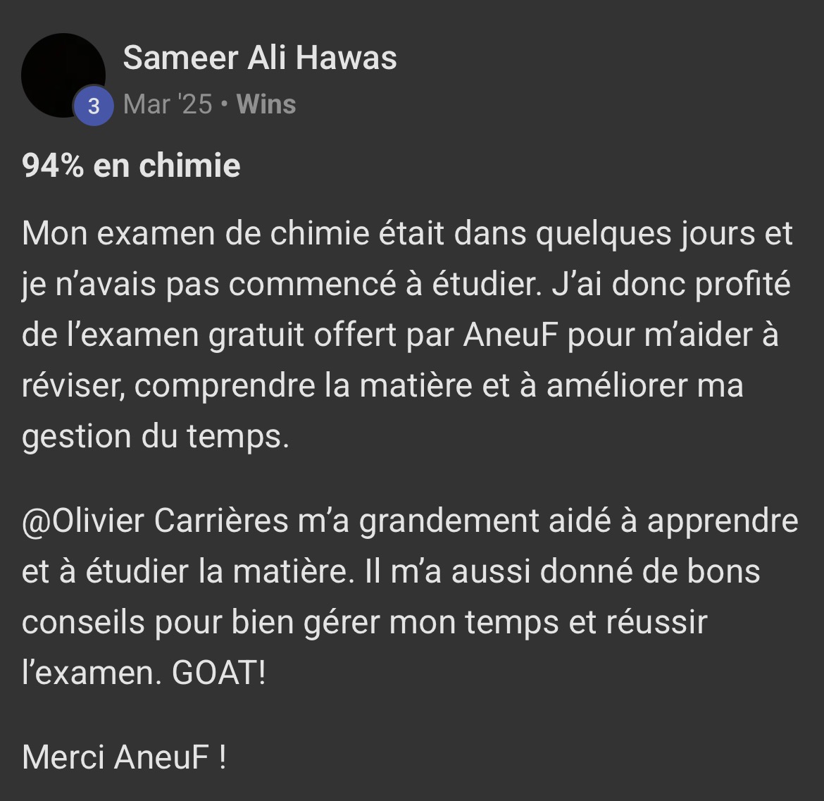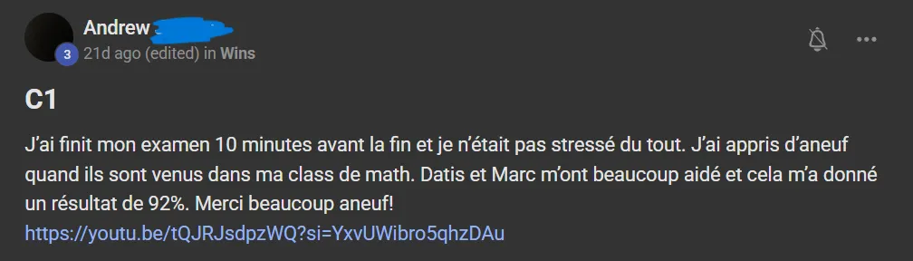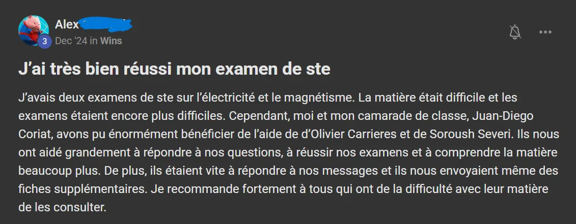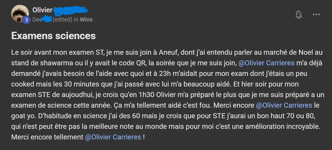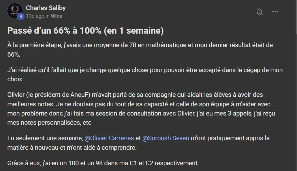 Voici ce que quelques élèves ont à dire d'AneuF: